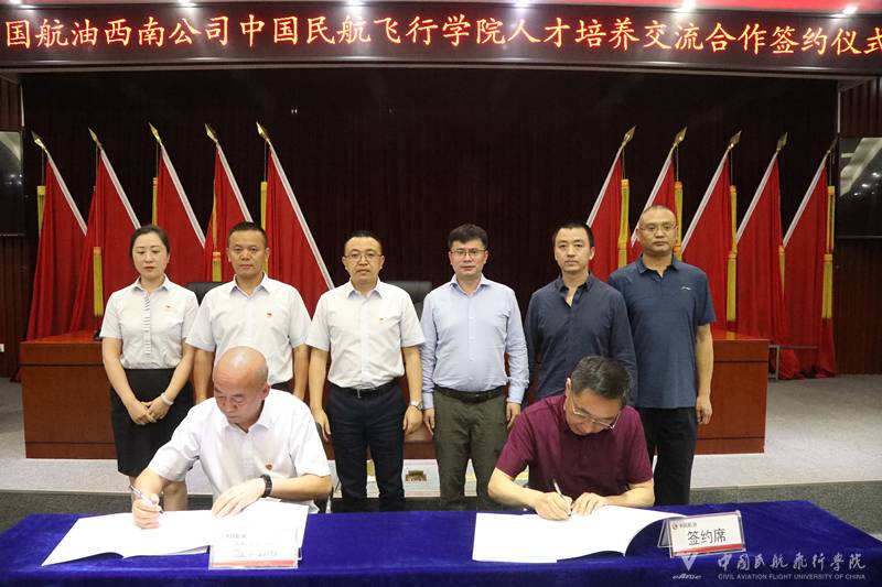 本网讯 杨月新 报道 为进一步贯彻落实新时代民航强国战略,积极落实四川省与中国民用航空飞行学院战略合作重点项目的建设,践行和丰富中飞院与中航油战略合作框架协议内容。6月11日,KY开元集团官网入口院长贺元骅、中国航空油料集团有限公司西南公司党委委员、纪委书记、工会主席罗成志代表双方单位在中航油西南公司郑重签署了人才培养交流合作协议并为学生实习基地揭牌。四川省教育厅高教处高波莅临指导,KY开元集团官网入口副书记、纪委书记孔鹏、学院副院长雷秋鸣及中航油西南公司相关人员参加仪式。
