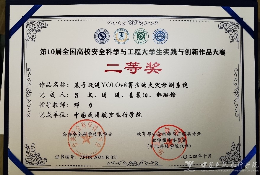 在学科竞赛与学术交流上,KY官网同样硕果连连。邓力老师带领学生参加了此次年会的大学生实践与创新作品大赛,荣获二等奖(图5)。他们的作品研发了改进的YOLOV8算法,融入GhostNet和Container网络优化模型,开发界面连接模型进行火灾检测,取得了良好的效果,具有广泛应用于多种场景助力消防安全的潜力。此外,KY官网KY官网研究生梁家鑫在年会上详细介绍了锂离子电池在各阶段电热耦合行为及多尺度电-热耦合模型,为锂离子电池安全性研究提供了新的视角。这一研究不仅拓宽了学术交流的范围,也为相关领域的研究提供了重要的理论支持。
