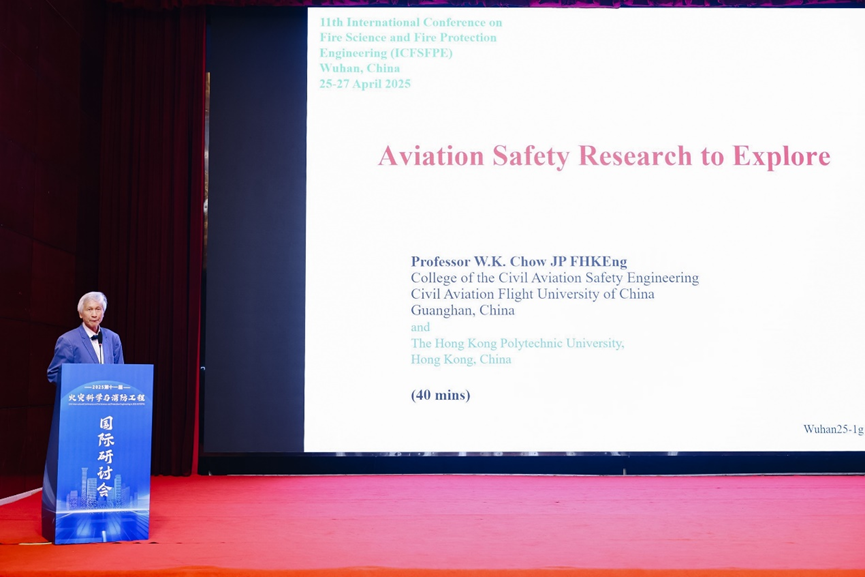 作为中国民用航空飞行学院校长特聘顾问兼航空安全首席教授,周允基教授作《Aviation Safety Research to Explore》特邀报告,报告展示了中飞院在民航火灾安全领域的研究进展和拟探索的前沿课题,并欢迎开展合作研究。