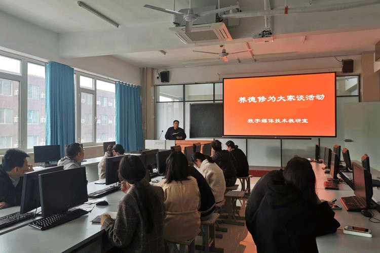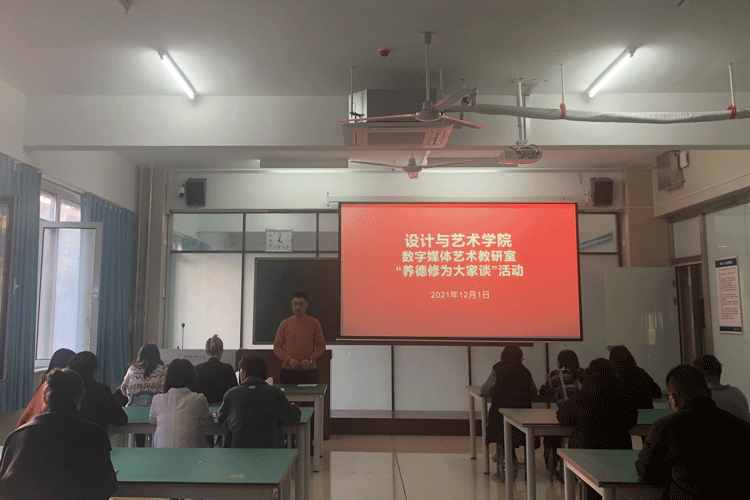 数字媒体艺术教研室主任魏铭,结合自身多年的教学经验,谈了自己对养德修为工程工作的认识,要以身作则,全身心投入教学、潜心教书育人,实现与学生共生共长。