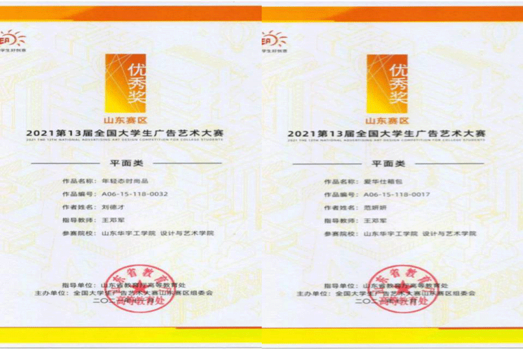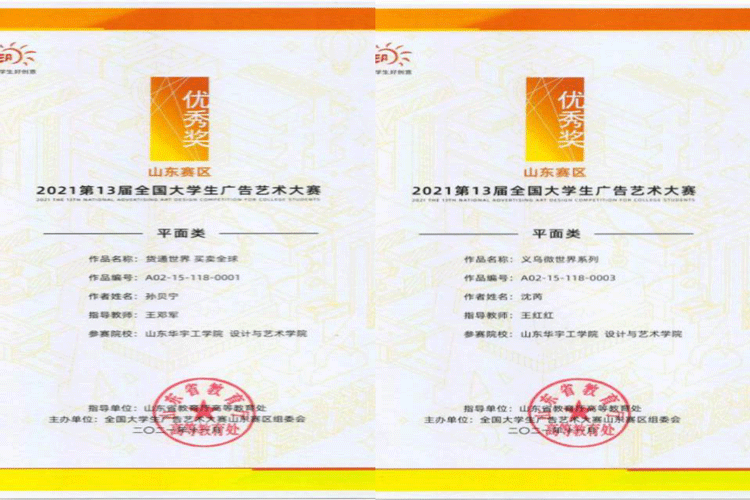 近日,2021年第13届“全国大学生广告艺术大赛”获奖结果揭晓,山东华宇工学院kaiyun体育网页登录入口喜获佳绩,平面类获奖6项、影视类获奖1项、广告语类获奖1项,其中潘思佳同学的作品《娃哈哈苏打水系列》获国家级二等奖。
