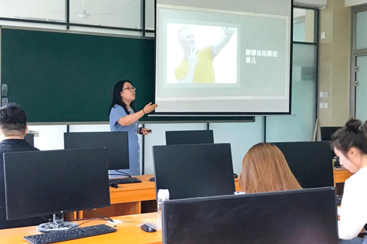 《视听语言》是数字媒体技术专业的一门理论基础课程,王晶蕾老师利用“自拍”这一热点话题进行导入,在讲课的过程中,多次通过播放视频案例的方式,辅助讲解理论知识,极大的调动了台下观众的积极性,整堂课变得格外生动有趣。