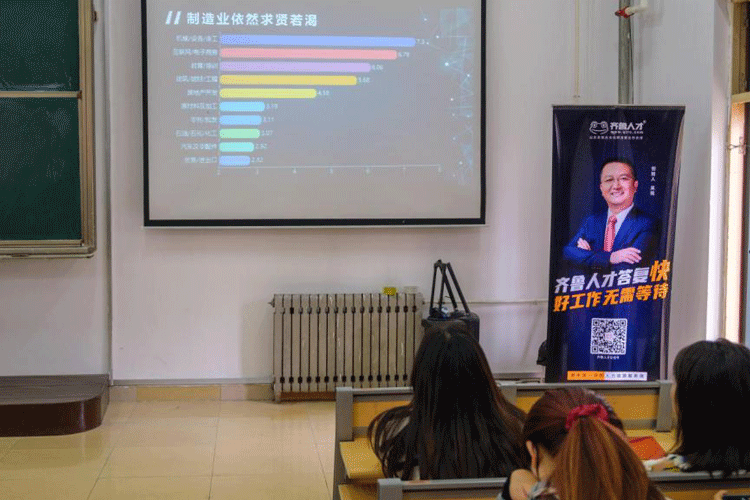 尚主任从齐鲁人才网独家大数据揭秘,不同纬度、多角度的讲解山东省大学生就业现状和就业的新趋势、新政策,为同学们带来最新的就业市场解读,并对2021届中国校园招聘做出预测;尚主任还鼓励同学们积极参加线上招聘会和跨专业就业,树立正确的就业观,先就业后择业。会场气氛热烈,同学们互动积极。