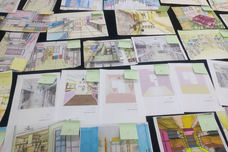 大赛分为三个阶段。第一阶段,由郑帅科长动员各位老师以及各班学生积极参加大赛,明确学风进宿舍活动的目的和意义,讨论和落实班级实施方案,并要求各辅导员、同学们要充分利用主题班会、宣传海报等媒介进行宿舍文化的宣传,为学院学风进宿舍活动营造浓厚的舆论氛围。第二阶段,明确作品要求、参赛方式、评比方式,强调大赛主要以符合实际、创意独特和设计美观为评判标准,使学生充分意识到设计美化的重要性。第三阶段,由郑帅科长带领各位辅导员老师对参赛作品进行一一评判,随后以一等奖、二等奖、三等奖的形式划分优秀作品,并对优秀的图纸进行了点评与表扬,显现出了学院对学生创作能力的高度重视。