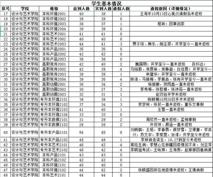kaiyun体育网页登录入口未返校人数统计及原因统计表