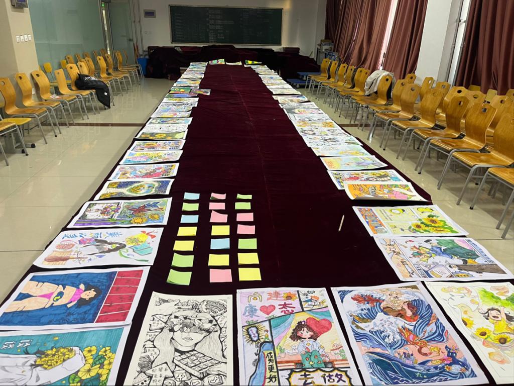 此次心理健康绘画设计大赛面向全学院同学一经推出便得到强烈反响。此次进行评选的四十多张作品具少年意气又蕴含生活真谛,虽简约随意又不失个性魅力,既展示了同学们丰富的内心世界,又帮助我们了解到现阶段大学生心理健康状况评选现场,各评委积极探讨作品的版面设计,色彩搭配,情感表达提出自己对作品的见解积极为自己喜爱的作品投上宝贵的一票最终评选出一等奖名,二等奖名,三等奖