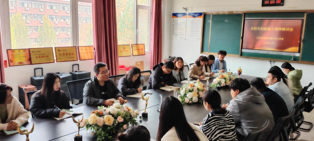 为进一步加强辅导员工作室团队建设,提升科研育人能力,推动辅导员向专业化、职业化、专家化发展,2024年11月12日上午,大学生创新教育辅导员工作室在22号楼309室召开本科生创新能力培育专题研讨会,学院全体学工人员参会。