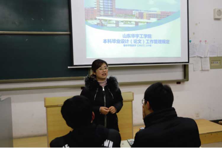 会上,周院长宣读了《山东华宇工学院本科生毕业设计(论文)工作管理规定》,公布了专业毕业设计指导老师组遴选名单和2019届毕业设计总主题。周院长强调,毕业设计(论文)工作是本科生毕业前必须完成的一项重要工作,是教学过程的一个重要环节,撰写毕业设计(论文)选题必须符合专业培养目标和教学基本要求,希望同学们认真对待,精心准备。