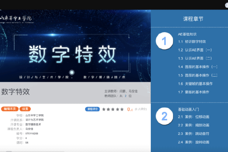 根据德州市当前疫情防控形势,3月14日起山东华宇工学院停止线下教学,调整为居家线上教学。《数字特效》作为校级线上线下混合式一流课程自2020年以来持续推进在线教育的提质升级,本次线上授课针对课程内容操作性较强的特点,以及学生After Effects软件操作基础薄弱的学情特征,主要采用钉钉软件中的课堂直播进行授课,真正做到了教师停课不停教、学生停课不停学。
