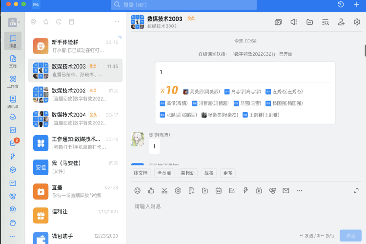 本门课程采用钉钉软件中的课堂直播进行授课,授课过程中首先对学生自学时产生较多问题的知识点进行解答,通过互动了解学生的疑惑点所在,集中辅导,集中击破。