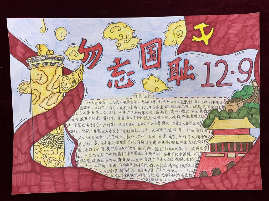 为纪念“一二·九”运动88周年,引领青年学生重温红色历史,传承红色基因,2023年12月12日,kaiyun体育网页登录入口团总支组织开展纪念“一二·九”运动88周年手抄报评比大赛。