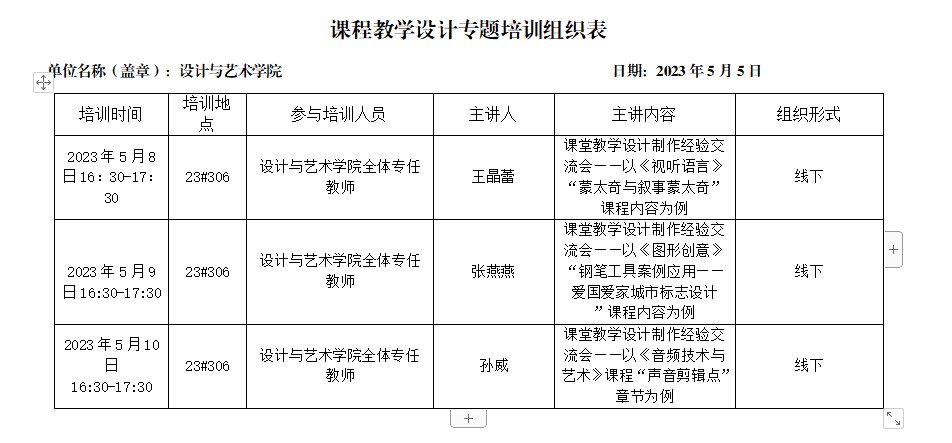 根据《山东华宇工学院关于进一步深化课堂教学改革工作的实施方案》要求,近期学校将启动优秀课程教学设计评选工作。 为进一步提高教学设计质量,我院将于5月8日-10日开展课程教学设计专题培训,现将有关事项通知如下: