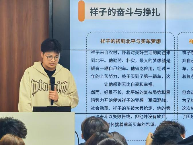 在书籍分享环节,同学们围绕《活着》《飘》《骆驼祥子》等经典著作展开热烈讨论。大家结合自己的生活体验,分享阅读心得,探讨作品中的深刻内涵。有同学分享道:“《活着》让我深刻体会到生命的坚韧与珍贵,即使面对苦难,也要勇敢前行。”另一位同学从《飘》中获得感悟:“斯嘉丽的成长历程教会我,在逆境中保持乐观与奋斗精神的重要性。”还有同学谈到《骆驼祥子》:“祥子的命运让我反思社会与个人的关系,也让我更加珍惜当下的生活。”