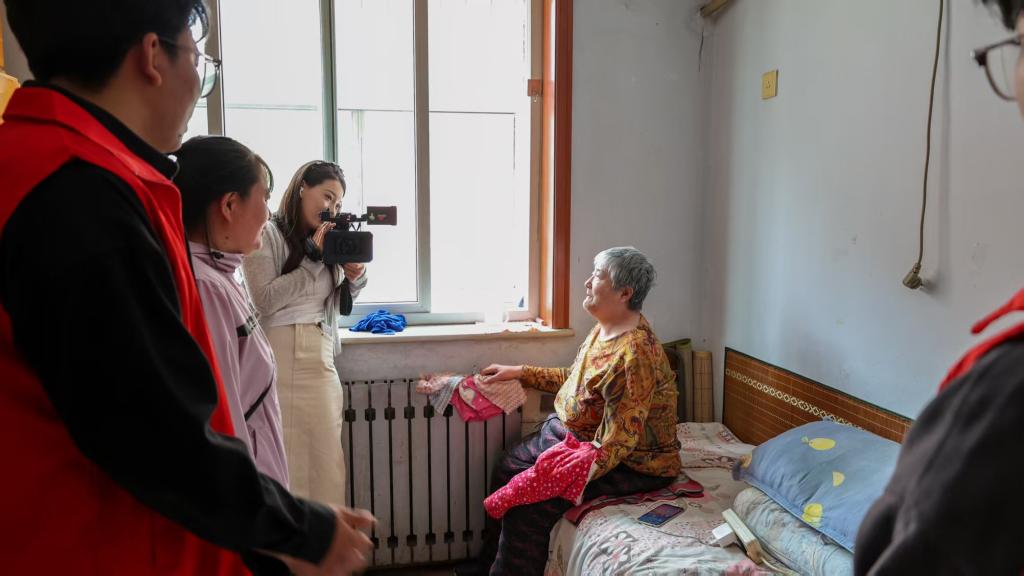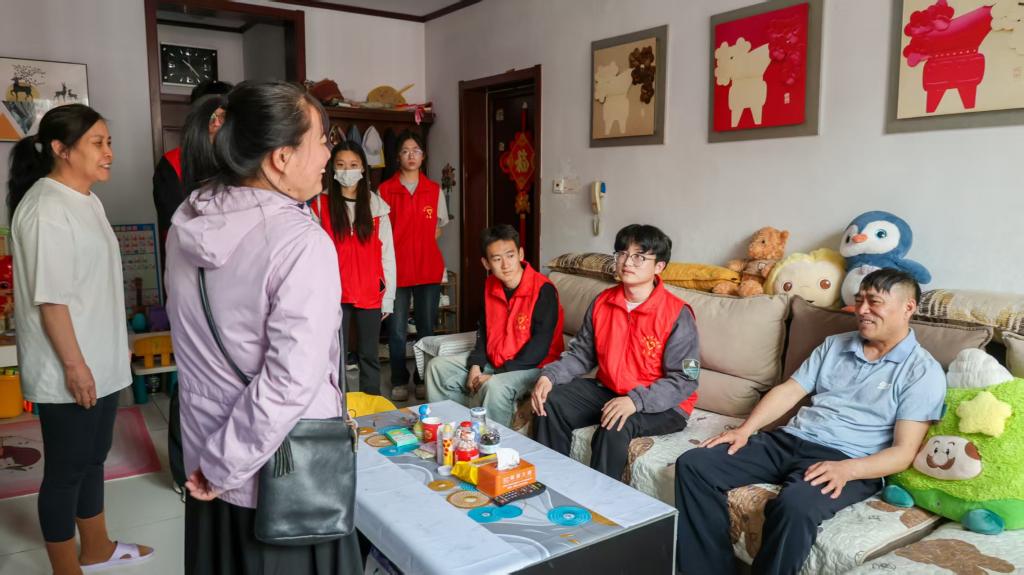 仪式结束后,设计学子们走进独居和困难老人家中,开展上门慰问。他们仔细询问老人身体与生活状况,帮助整理家务、检查用电安全,并贴心送上手写卡片与慰问品,用真情传递来自校园的温暖关怀。“以后家门口就有‘亲人’了。”一位老人动情地说,眼里满是笑意。