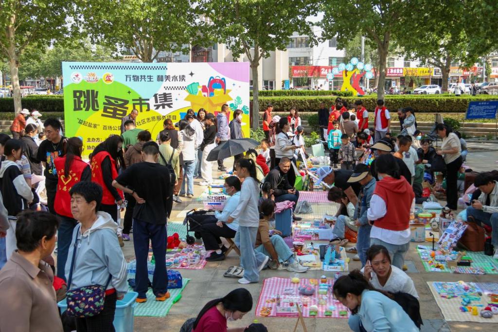 市集活动在精彩的民俗表演中拉开帷幕,现场热闹非凡。此次大集共设置百余个摊位,分为跳蚤市场和公益集市两个部分。跳蚤市场上的居民们在山东华宇工学院学生志愿者的引导下,纷纷把家中闲置的书籍、玩具、衣物等物品带到摊位上,整齐摆放、明码标价,期待这些 “旧宝贝” 能在新主人手中重焕生机。色彩缤纷的儿童绘本、款式新颖的衣物、充满童趣的玩具……一个个摊位如同小型宝藏库,琳琅满目。孩子们在摊位间欢快穿梭,精心挑选心仪物品,兴奋之情溢于言表;大人们也在交流中分享着闲置物品背后的故事,现场满是欢声笑语。